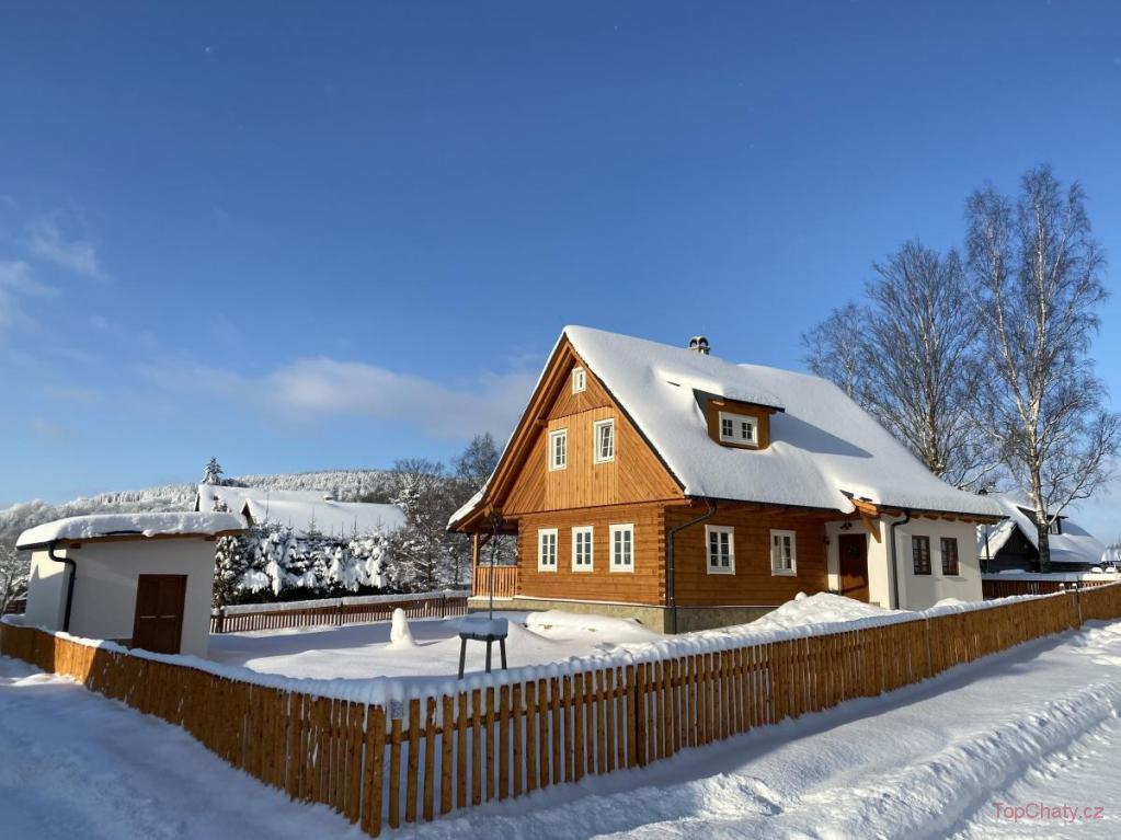 🏡 Nově vybudovaná poloroubenka ze smrkového dřeva pro 8 osob, se nachází v samotném centru Deštného v Orlických horách. I přes atraktivní lokalitu nabízí chalupa dostatek klidu pro aktivní i pasivní odpočinek.