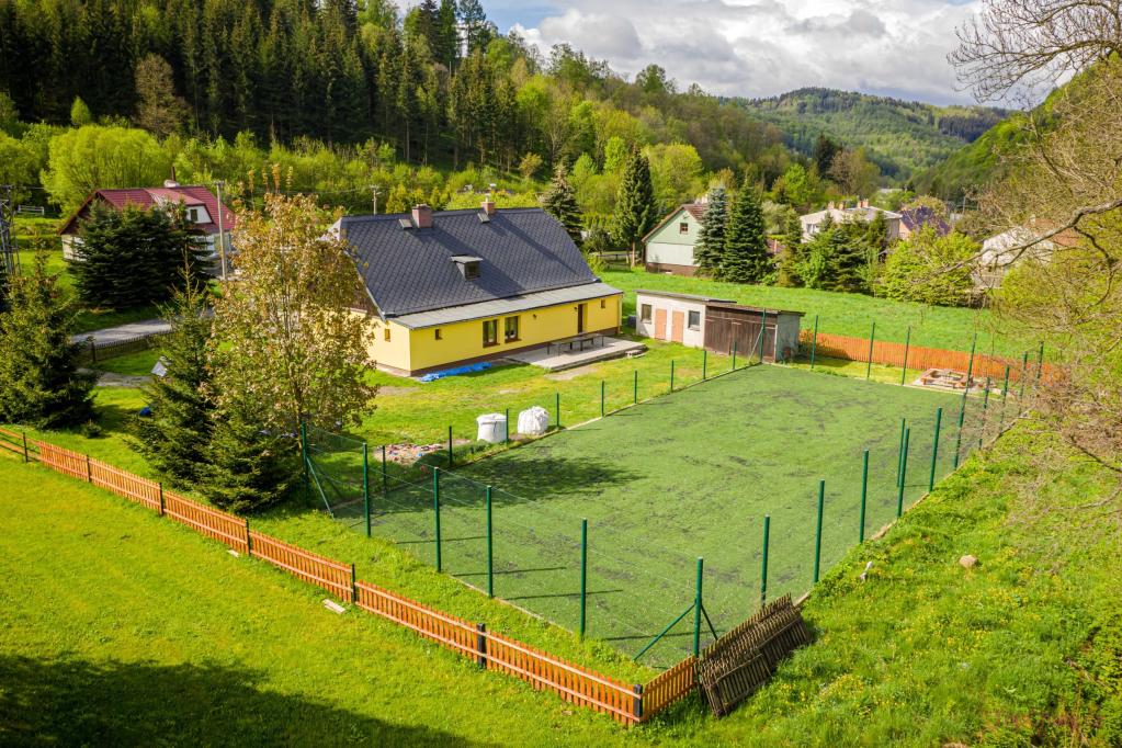 🏡 Chata Aktiv se nachází ve Vernířovicích na Šumpersku. Najdete zde prostornou zrekonstruovanou chatu s kapacitou 19 lůžek v 6 ložnicích, zahradu s vlastním hřištěm s umělou trávou, venkovní posezení, ohniště a dětské hřiště. Je zde i uzamykatelná