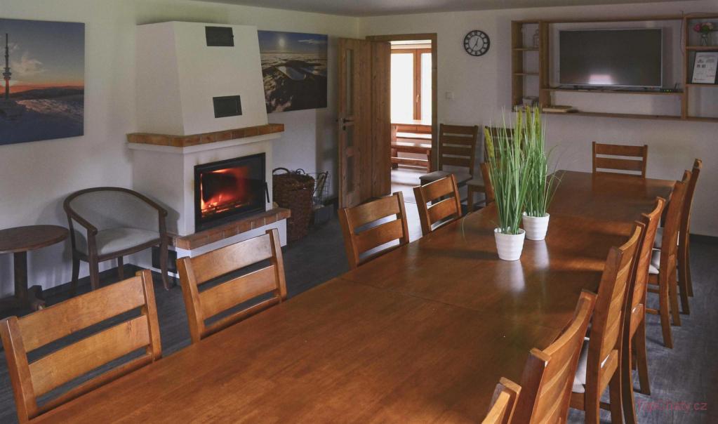 místnost s krbem, dětská herna a kuchyně s veškerým vybavením. Deskové hry, TV a sportovní vybavení je samozřejmostí, taktéž internet.