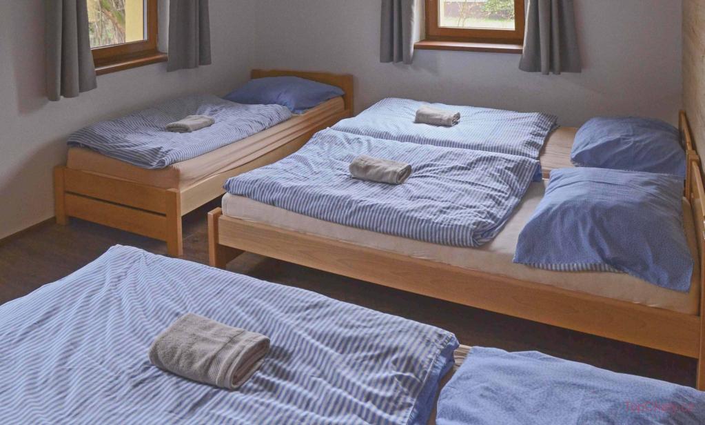 Další: fotbálek, šipky, stolní hry, hřiště se sítí, balóny, badminton, petanque, floorbalové hole, boby a lopaty na sníh, gril, ohniště, stolní a společenské hry, parkoviště