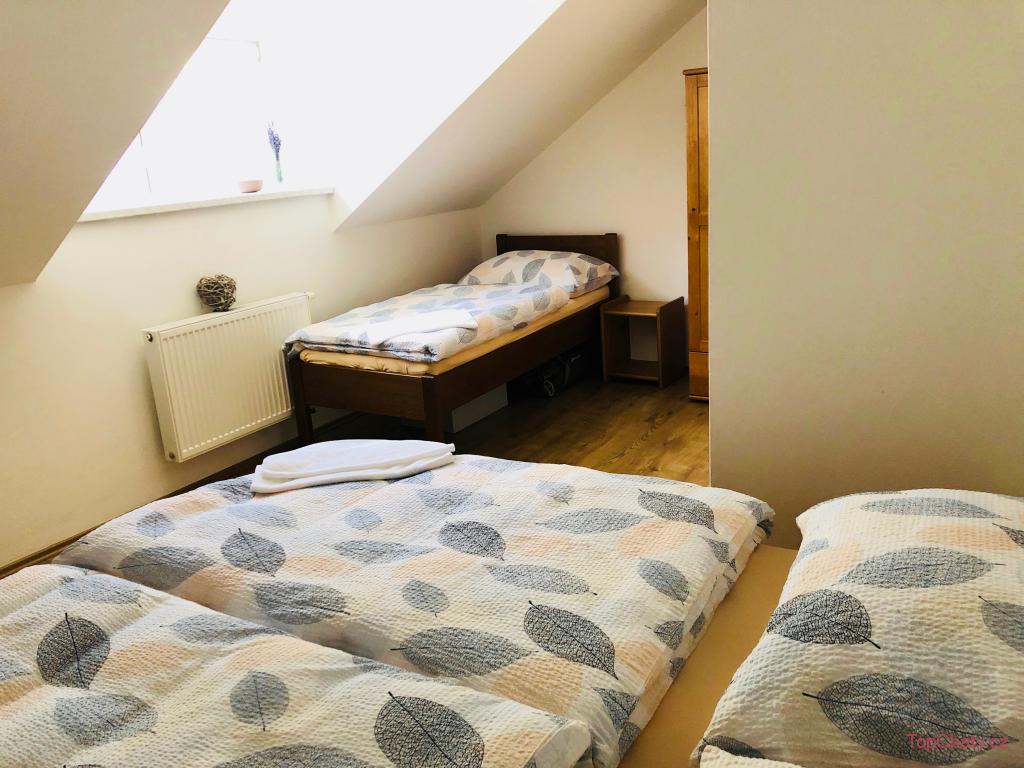 Ložnice a pokoje: V patře jsou 2 ložnice, obě čtyřlůžkové.