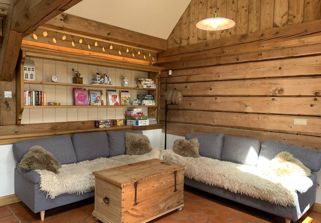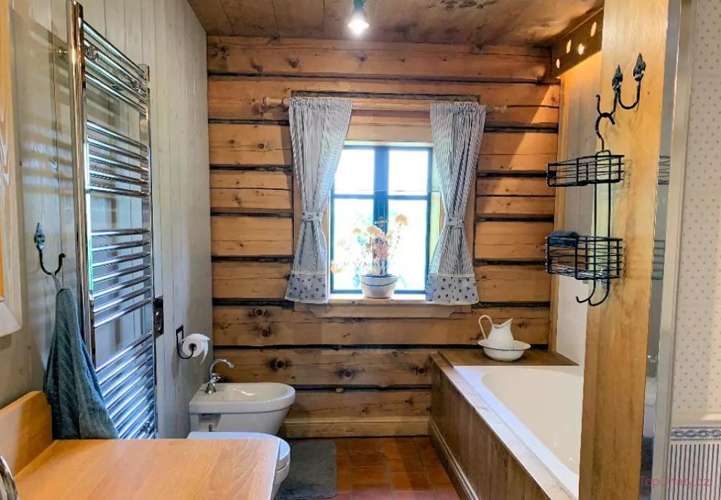 👉 V přízemí chalupy se nachází pokoj, koupelna, obývací místno..