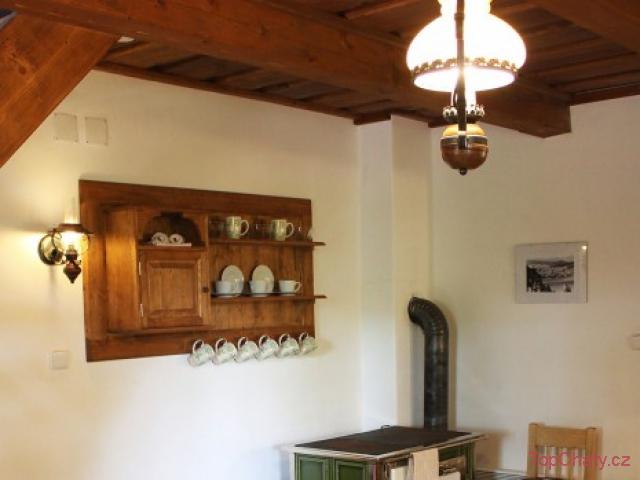 Vytápění dřevem, elektrické vytápění, možnost vytápění kachlovým sporákem na dřevo.