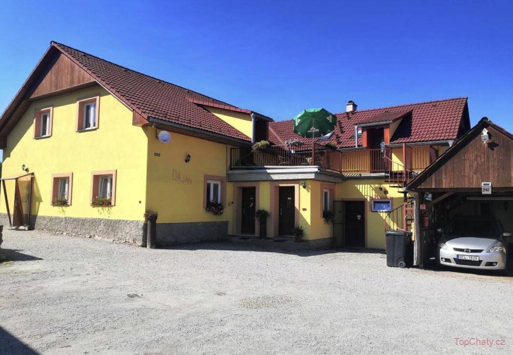 🏡 Penzion Dajan je rekreační domek ležící na okraji malého městečka Strmilov v České Kanadě a najdete zde 3 apartmány pro celkem 17 osob. V přízemí se nachází 2 apartmány a ze dvora vede točivé schodiště na terasu ze zábradlím, kam se vstupuje do samostatného třetího apartmánu.