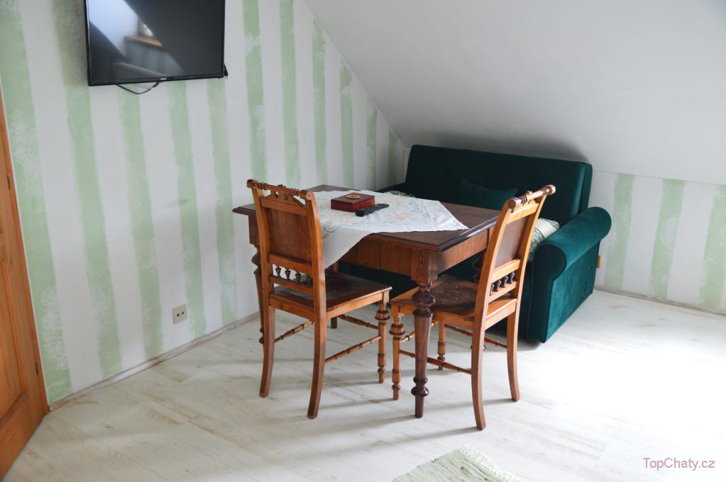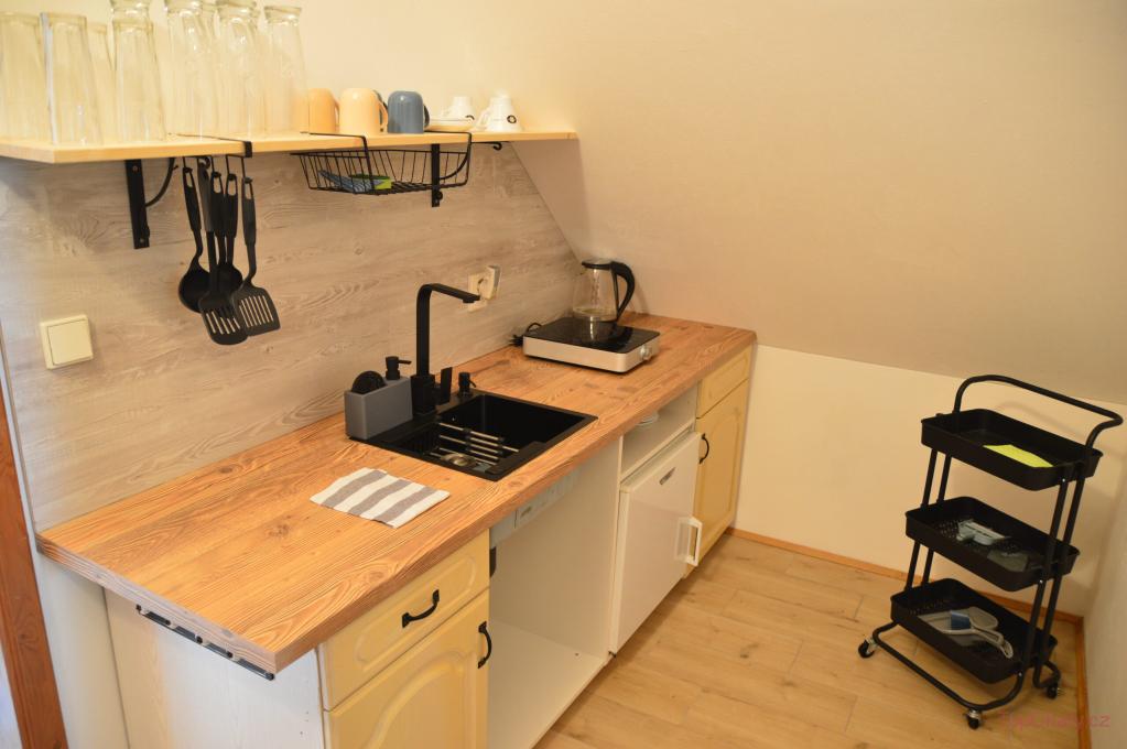 Kuchyň Lednice na každém pokoji, v některých pokojích mikrovlnka, vařič, varná konvice.