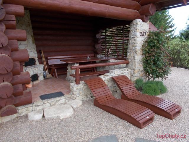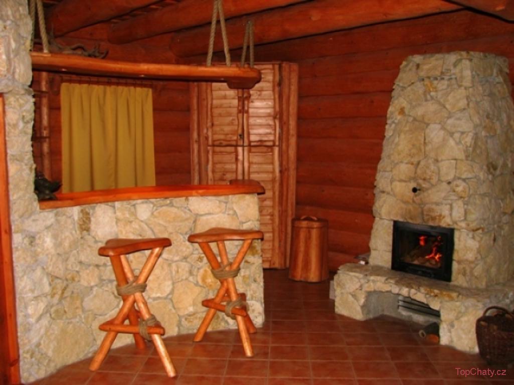 Ubytování v kanadském srubu který je vybaven kuchyňským koutem s chladničkou, sociálním zařízením včetně WC a masážní sprchy.