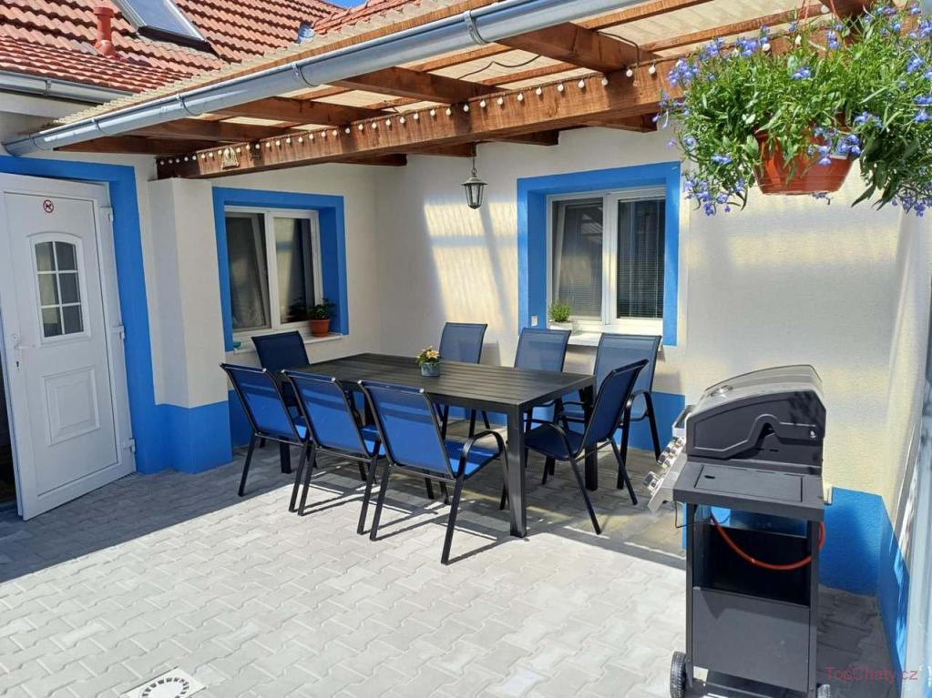 Modrá chalupa se nachází v obci Vrbice v Jihomoravském kraji. Ubytuje až 10 osob ve 3 ložnicích. V přízemí najdete společenskou místnost s posezením, plně vybavenou kuchyň, jeden dvoulůžkový pokoj s WC a koupelnu s infrasaunou. V podkroví je jeden dvoulůžkový pokoj, jeden šestilůžkový pokoj a jeden dětský pokoj ve kterém mají děti zázemí/hračky, TV, postel. Chalupa má uzavřený dvorek na kterém je venkovní zastřešené posezení s plynovým grilem. 🏡☀️
