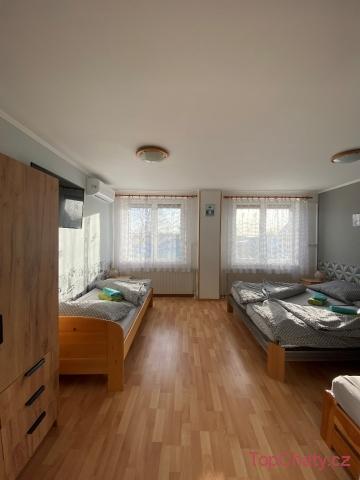 V klidné vinařské obci Prušánky se nachází ubytování v soukromí až pro 8 osob. Objekt je tak vhodný pro pobyt menších skupin přátel či pro rodiny s dětmi. Ubytování nabízí celkem tři ložnice – dvou dvoulůžkových a jedné čtyřlůžkové,. V kuchyni mohou hosté využívat elektrického a plynového sporáku, horkovzdušné trouby, mikrovlnné trouby, rychlovarné konvice, kávovar pákový, toustovače, ledničky s mrazákem, myčky nádobí i veškerého nádobí. V dvou pokojích je klimatizace a televizor. Na zahradě je připraven bazén, stolní fotbálek zdarma. Parkování je umožněno přímo u objektu v garáži. V Prušánkách čeká návštěvníky jen klid a ničím nerušená pohoda. Okolí nabízí řadu příležitostí k výletům i k příjemnému posezení v jednom z mnoha okolních vinných sklípků.
