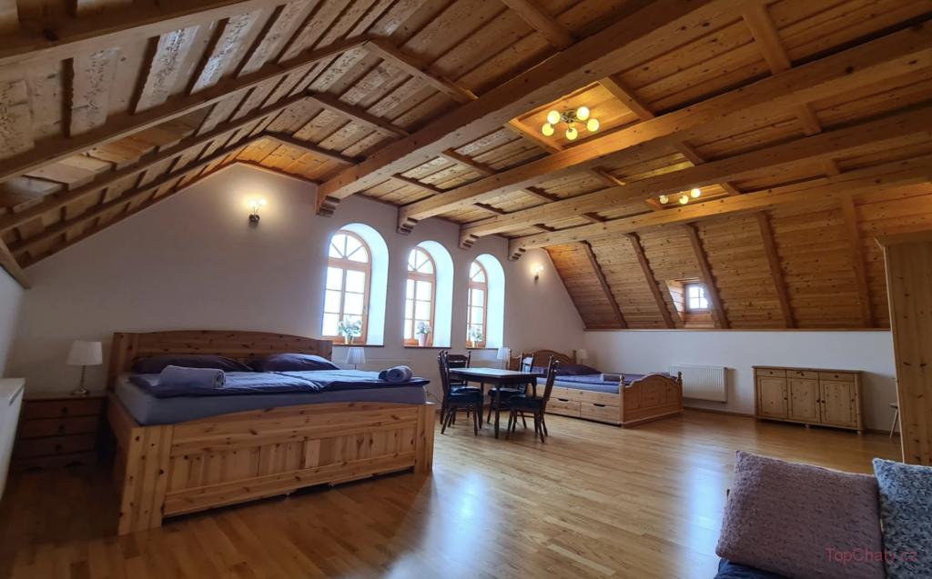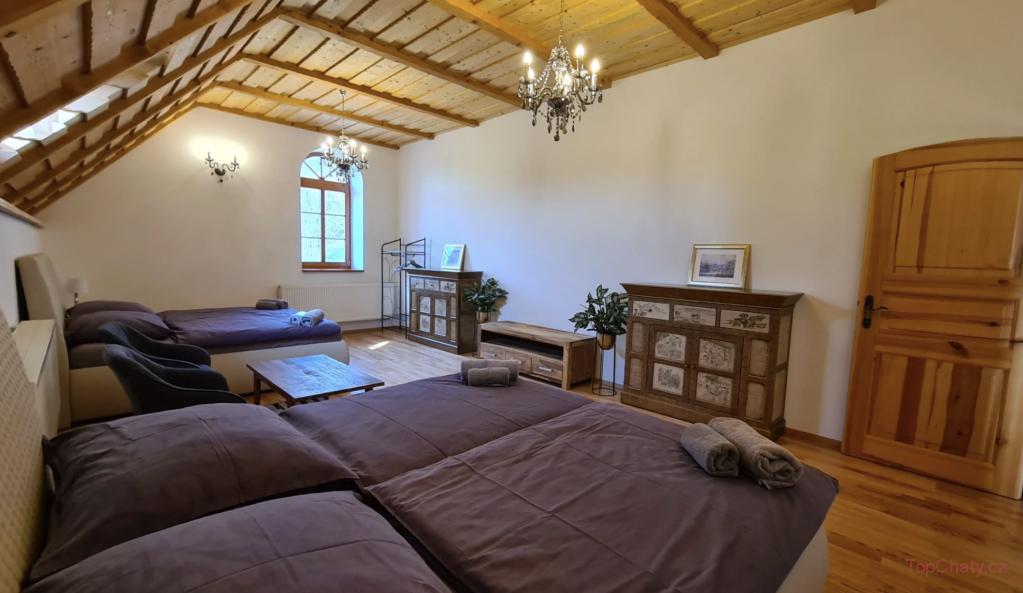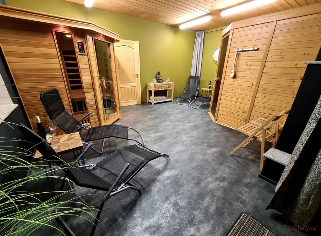 Další: wellness - vířivka, infrasauna a finská sauna, vyhřívaný bazén se slanou vodou, pračka a sušička, společenská místnost, pergola s posezením, gril, parkování, společenské hry, stolní tenis, trampolína, stolní fotbálek