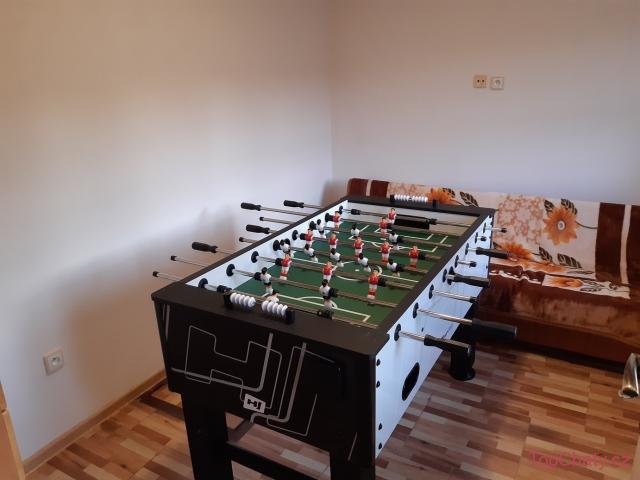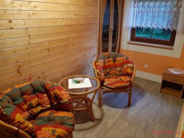 Další: Kolem chaty je pozemek o 500 m2,který je kompletně oplocen. Chata je ideální pro pobyt s malými dětmi a pejsky. Před hlavním vchodem je terasa s posezením. Z terasy se vede do předsíňky. Z předsíně se vejde do chodby a herny, kde je umístěn stolní fo, dětské hřiště