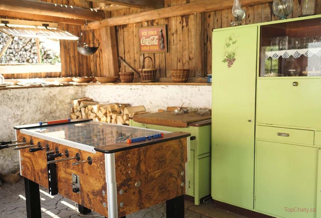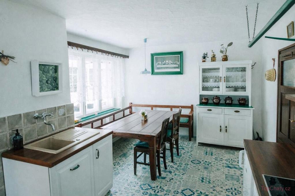 Kuchyň chalupa - plně vybavená kuchyň - lednice, mikrovlnná trouba, sklokeramická deska, toustovač, rychlovarná konvice, domácí pekárna