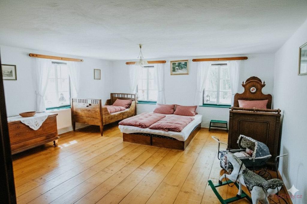 Objekt se skládá z chalupy a stodoly a pronajmout si můžete buď samotnou chalupu (6 osob), nebo i přilehlou stodolu (celkem 10 osob). V prostorné světnici v chalupě na vás čekají 4 lůžka, ve vejminku 2 lůžka a kuchyň s kachlovými kamny. Ve stodole najdete další 4 postele a bar. Dětská židlička a postýlka jsou samozřejmostí. ✨