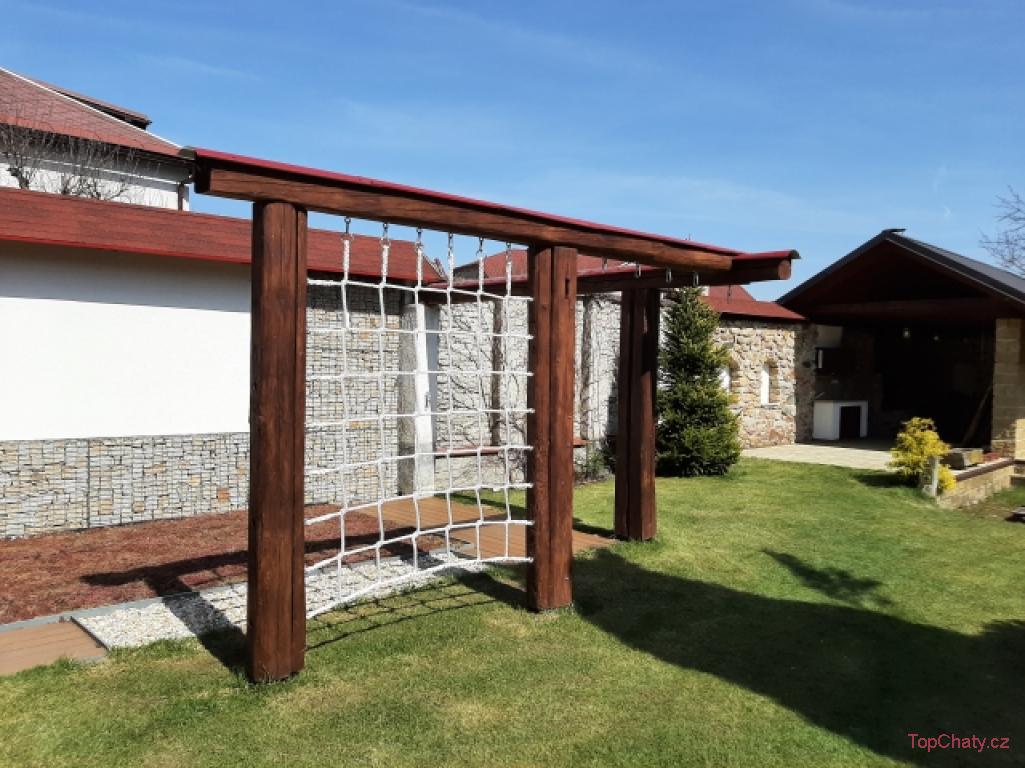 Další: stolní tenis, hřiště se sítí, koš na košíkovou, houpací síť, pískoviště, houpačka, tabule, kuželky, šplhací síť, dětské hřiště