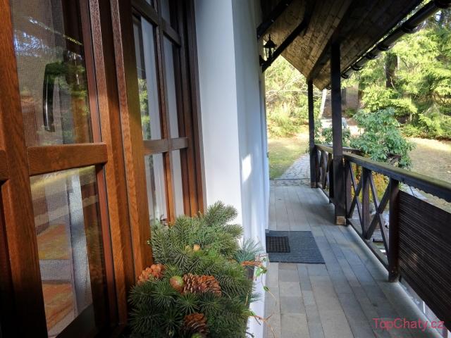 - 19 lůžek ve dvou a třílůžkových pokojích. Vždy dva pokoje mají společnou koupelnu s WC. V přízemí budovy je společenská místnost s vybavenou kuchyňkou, jídelnou a posezením u krbu a TV. V chatě je také lyžárna, šatna se sušákem na obuv a před chatou je terasa s ohništěm.