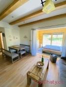 Nová dřevěná chata - 2 manželské postele, jídelní stůl. Samostatně nelze, není zde sociální zařízení.
