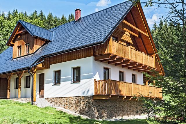 Horská chata Pod Ostružníkem se nachází v horní části obce Ostružná v Jeseníkách a nabízí komfortní ubytování pro až 20 osob v šesti prostorných pokojích. V přízemí chaty se nachází jídelna spojená s obývacím prostorem, kde je krb, velký jídelní stůl, televize a vstup na venkovní zastřešenou terasu s výhledem na horu Šerák. Plně vybavený kuchyňský kout zahrnuje indukční varnou desku, troubu, myčku na nádobí, lednici, mrazák a mikrovlnnou troubu. Přízemí doplňuje koupelna se sprchovým koutem a dvěma umyvadly, samostatné WC a společenská místnost s pohovkou, vzdušným hokejem, šipkami a dětským koutkem. Součástí chaty je také lyžárna a kolárna s vyhřívaným prostorem a samostatným vstupem. V patře se nacházejí čtyři třílůžkové a dva čtyřlůžkové pokoje, všechny vybavené manželskou postelí a samostatnými lůžky, šatní skříní a nočními stolky. Patro disponuje druhou koupelnou se sprchovým koutem a dvěma umyvadly a dalším samostatným WC. Chata je ideální pro rodiny s dětmi, protože nabízí dětskou postýlku, krmicí židličku, vaničku a hrací koberec. Venku je k dispozici zahradní nábytek, gril, trampolína, pískoviště, dřevěný domeček se skluzavkou a v letních měsících také bazén. Parkování je zdarma přímo u objektu.