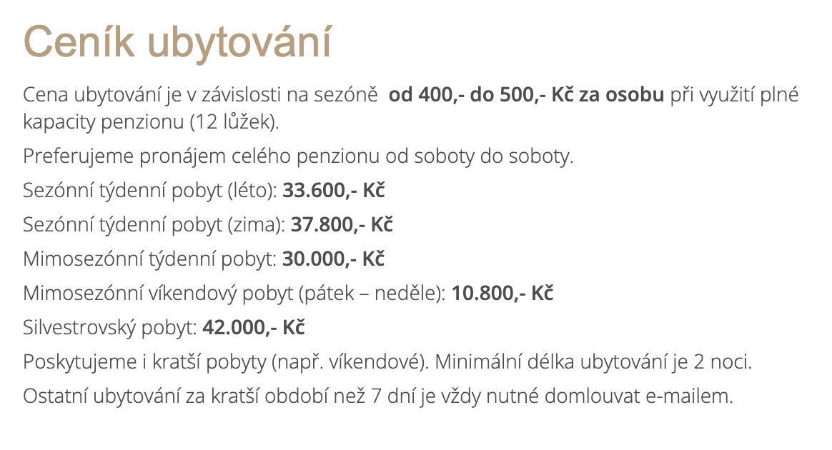 🏡 Ubytování od 30.000,- Kč/objekt/týden