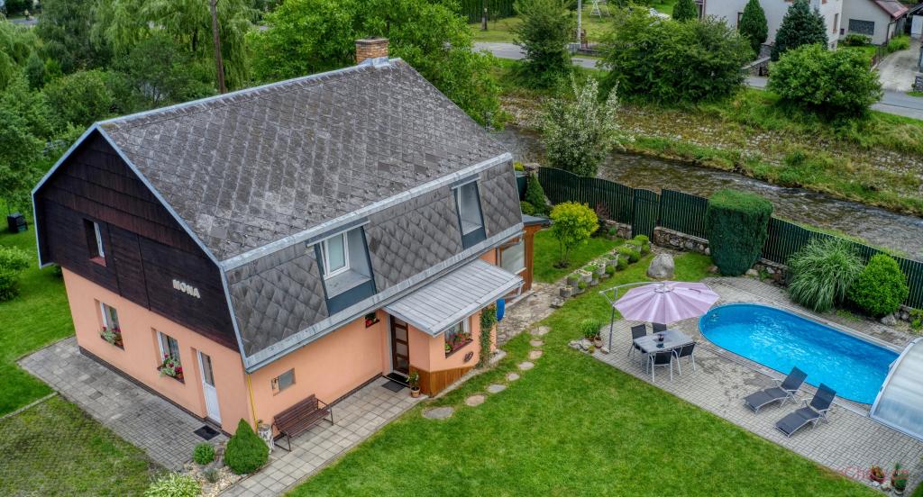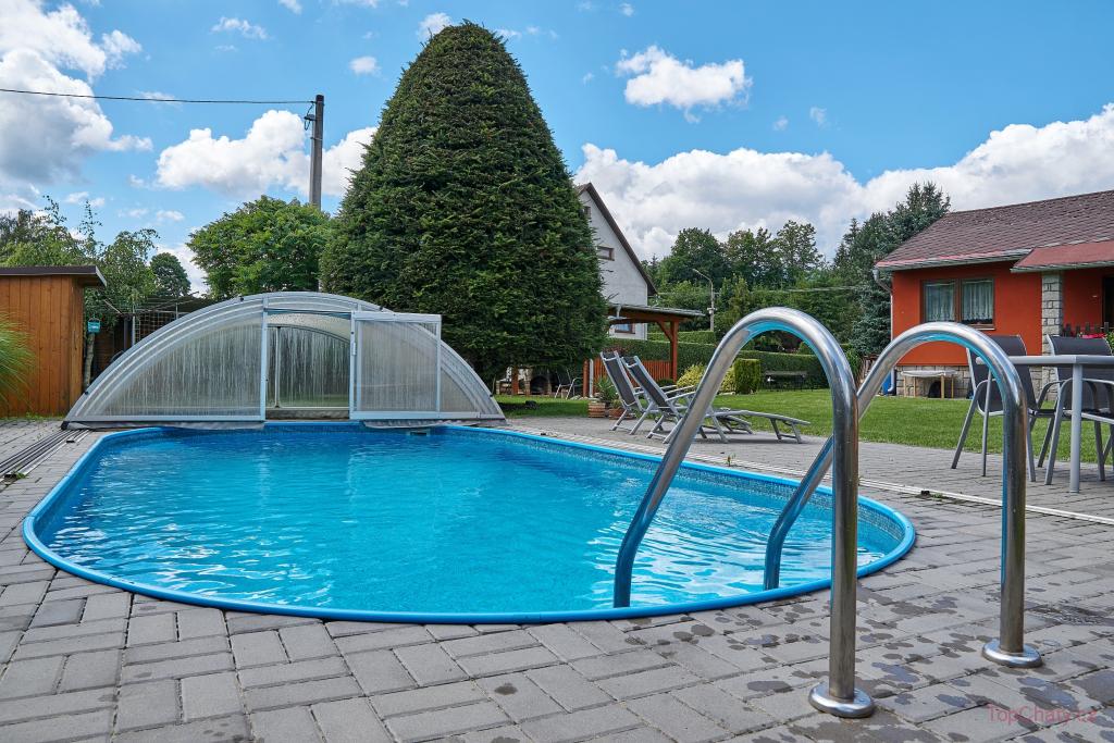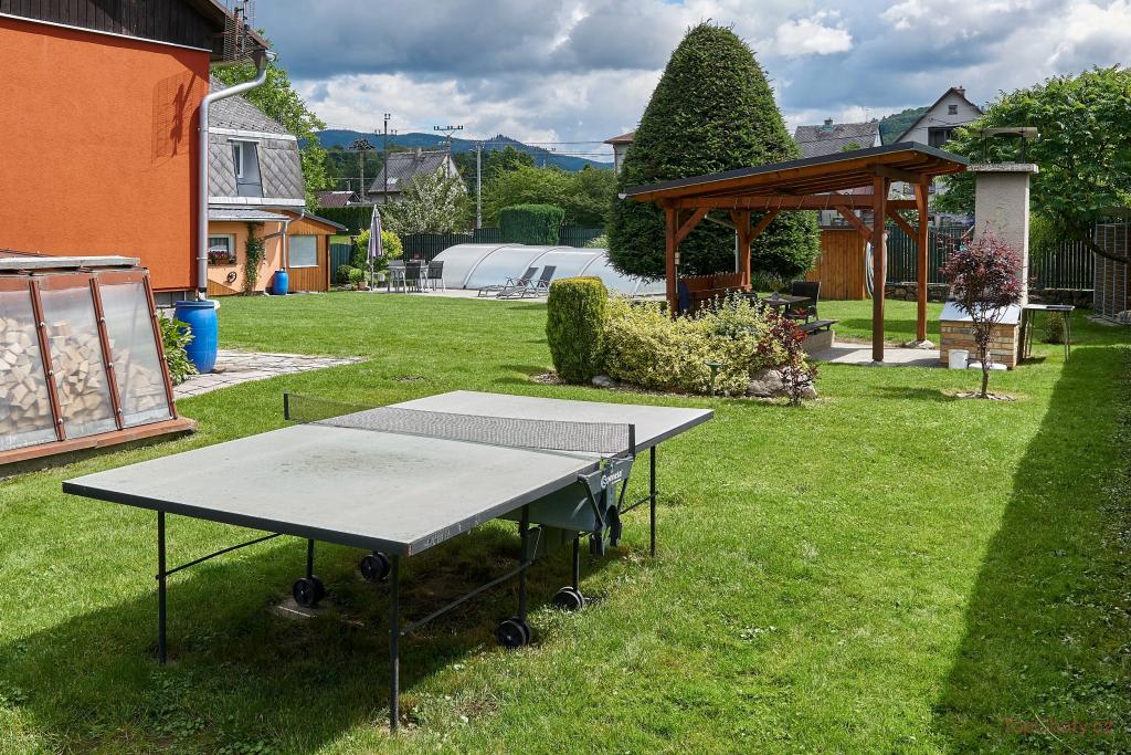 ✨ Součástí rozlehlé zahrady je i venkovní zapuštěný a zastřešený bazén, dvě posezení – jedno hned za penzionem, druhé u venkovního krbu a ohniště. Děti se mohou zabavit na trampolíně nebo pískovišti. Volné chvíle můžete trávit i stolním tenisem. Příjemné osvěžení vám poskytne i řeka Bělá, která teče v bezprostřední blízkosti penzionu. Za nepříznivého počasí a v zimě si můžete dopřát relaxaci ve finské sauně s ochlazovacím bazénem.