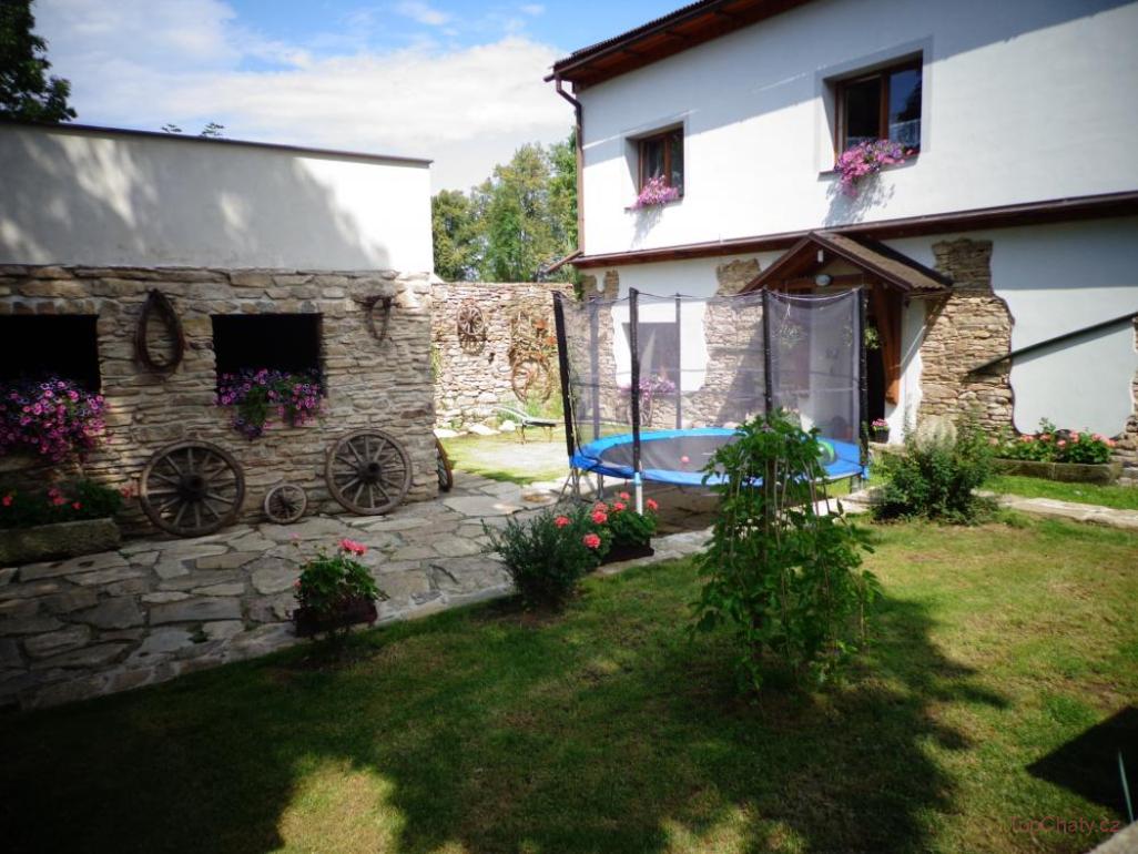 ✨ Hlavním vchodem se vchází do prostorné chodby, která je vybavena 2 truhlami a bankovním sejfem. Z této chodby se vchází do apartmánu A. V přízemí objektu je Vám dále k dispozici společenská místnost s televizí, kulečníkem, šipkami, stolním fotbálkem a výčepním pultem a najdete zde i vířivku se saunou. Apartmán B je umístěn v 1. patře domu. U domu se rozprostírá upravená zahrada s venkovním posezením, houpací sítí a krbem. Zajímavým zpestřením Vašeho pobytu může být promítání filmu na zeď domu - žijete si tak soukromé letní kino.