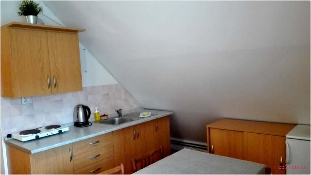 Příjemné a klidné ubytování v nádherné valašské přírodě nabízí Chalupa pod Bukovinami umístěná v části obce Horní Bečva v Kněhyních. Pro maximálně 40 osob je připraveno celkem 8 pokojů. Pět z těchto pokojů je vybaveno koupelnou (sprchový kout s umyvadlem a WC), kuchyňkou s vybavením (dvou-plotýnkový vařič, lednice, kovice a nádobí) a jídelním koutem. Zbývající tři pokoje mají také vlastní koupelnu (sprchový kout s umyvadlem a WC) a jídelní kouty, ale dělí se o společnou vybavenou kuchyňku (2x dvou-plotýnkový vařič, 2x lednice, konvice a nádobí). Chalupa má navíc za příplatek velkokapacitní kuchyň s myčkou na nádobí, malou lednici, velkou lednici 339 l (228 l lednice a 111 l mrazák), pětiplotýnkovým plynovým sporákem, čtyřplotýnkovým plynovým sporákem, rychlovarnou konvicí 2x, velkým dřezem 2x a malým dřezem 2x. Vybavení kuchyně lze poslat na Váš e-mail. Ve společenských místnostech jsou TV se SAT. V celém areálu je zdarma WiFi. Chalupa má vlastní parkoviště, u objektu je také dětské hřiště (trampolína, houpačky, pískoviště, křídové tabule, ruské kuželky, ...) a tenisový kurt (pouze na tenis a v obuvi na tenis). Venkovní posezení na terase je uzpůsobeno pro 40 osob. Mezi další vybavení chalupy patří pingpongový stůl, billiard, šipky, grily, kotliny, trouba s elektrickým pohonem (na sele, ...) a daší. Okolí i velikost chalupy je vhodné jak pro rodinnou dovolenou, tak i pro firemní akce, školení, různé oslavy, svatby či sportovní sooustředění.